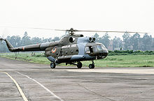 The Mil Mi-8 (Russian ŠŠø-8, NATO reporting name "Hip") is a medium twin-turbine transport helicopter that can also act as a gunship. The Mi-8 is the world's most-produced helicopter, and is used by over 50 countries. Russia is currently the largest active operator of the Mi-8/Mi-17 helicopter.